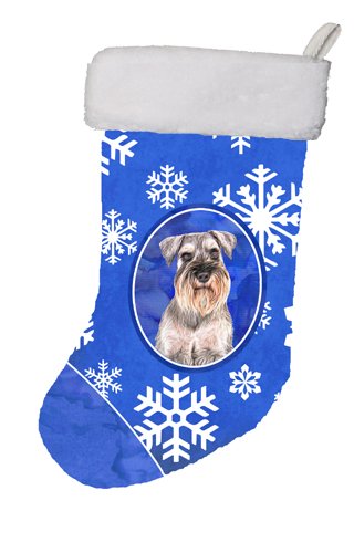 Caroline's Treasures KJ1179CS Winter Snowflakes Holiday Schnauzer Christmas Stocking, 11 x 18", Mulitcolor