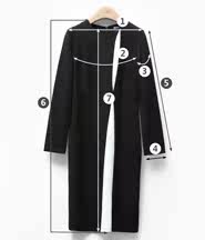 尺码 ①肩宽 ②胸围 ③袖臂围 ④袖口围 ⑤袖长 ⑥前衣长 ⑦后中长