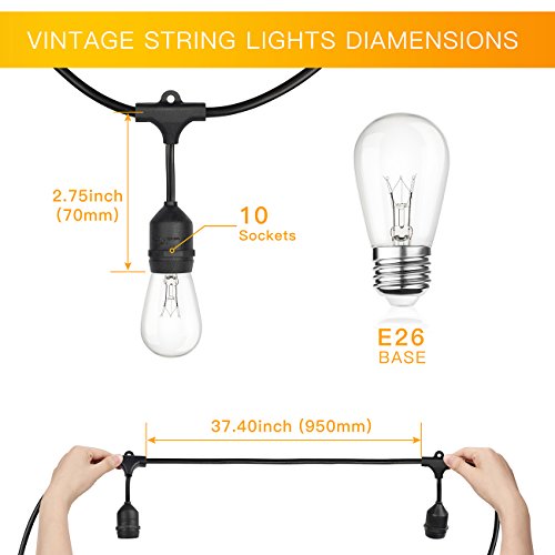 14 feet black rubber weatherproof cord contains 10 weatherproof light sockets, set about 1.3 feet apart.End-to-end connections,feel free to customize your arrangements.