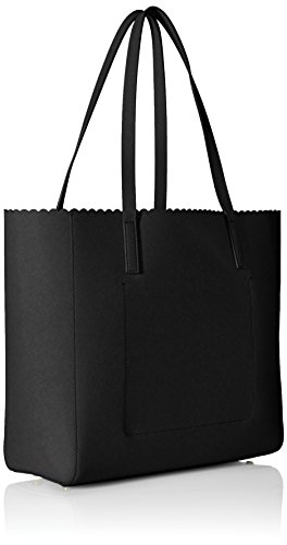 Tote bag in crosshatch leather featuring scalloped topline, dual shoulder handles, and luggage tag