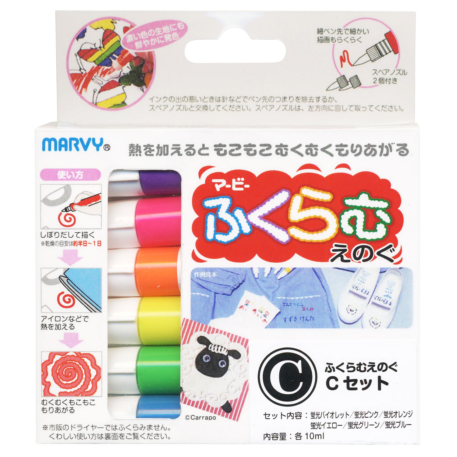 Draw on cloth, wood, paper, etc. Mokomoko bulging ink when applying heat such as iron and heat tool.