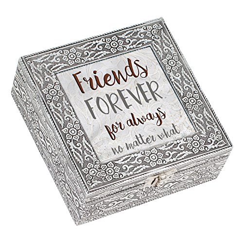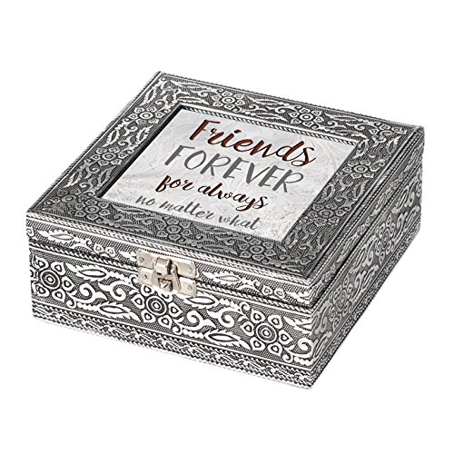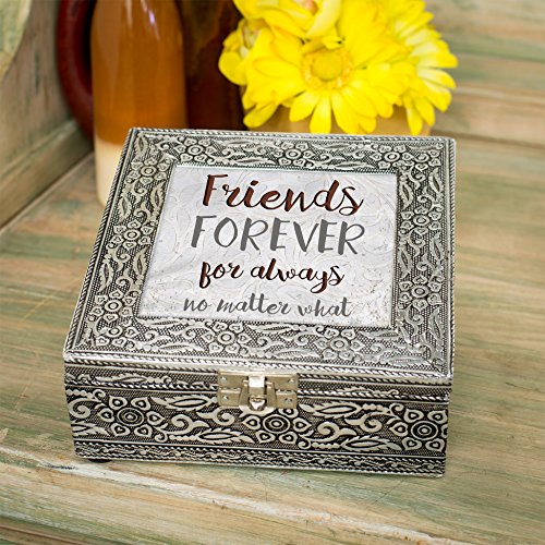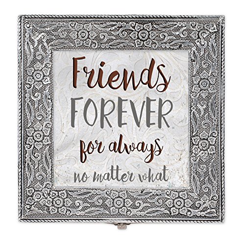 Friends Forever No Matter What Silver Stamped Metal Jewelry Music Box Plays Tune That's What Friends are For