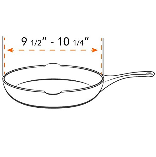 FITS 10” PANS – Redesigned (March 2017) to fit any 10" pan. Will not fit pans with lip-to-lip diameters smaller than 9.5". Verify your pan size before ordering. Not suitable for downdraft stoves.