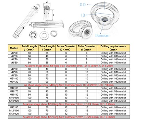 SamIdea(TM) 3Pack M8 x 100 mm 304 Stainless Steel Raw Style Shield Anchor Eye Bolts
