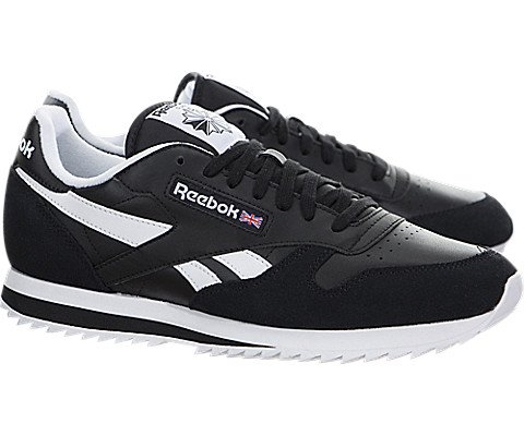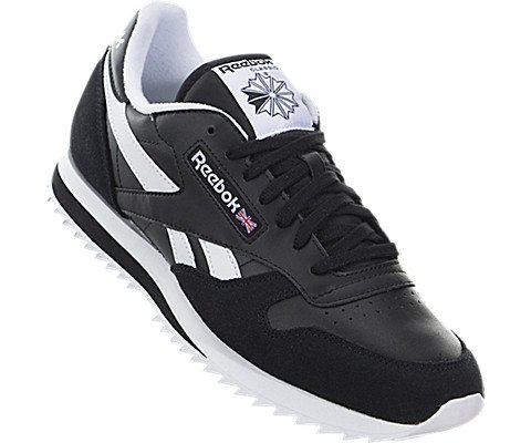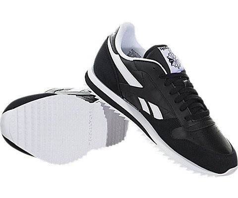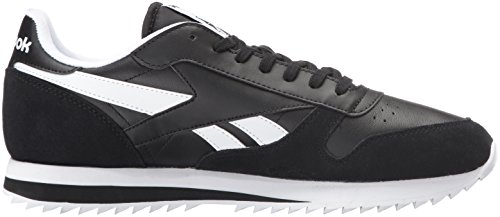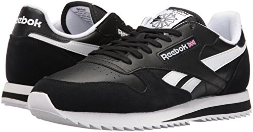 Reebok Men's CL Leather Ripple Low BP Fashion Sneaker, Black/White, 9.5 M US