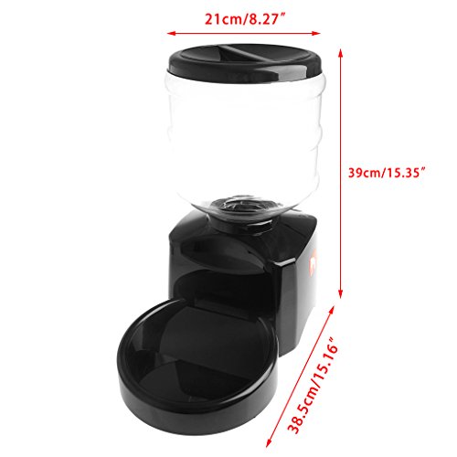 100% brand new and high quality Features: This pet feeder goes beyond simply feeding your pet, it is a reliable, portion-controlled, and balanced system. It is the ideal choice to take care of your pets. LCD panel, easy to operate Made of high quality material, durable to use Dispense portions from 1/4 cup to 3 cups, and feeding 1/2/3 times per day (no more than 3 times per day) 5.5L of dry food is enough for use Special design makes the food dry and fresh enough Calculates the total number of meals already served. Voice recording at the programmed meal times (up to 10 seconds for 3 times) Pet feeder only,other accessories demo in the picture is not included! Specification: Material: ABS Types of food: dry dog or cat food only Note: Do not use with moist food or canned food Power: 3x1.5V batteries (Not included). Size: app.38.5x21x39cm/15.16x8.27x15.35' Color: As the pictures shown Quantity: 1 Pc Note: 1.Transition: 1cm=10mm=0.39inch 2.Please allow 1-3mm error due to manual measurement. pls make sure you do not mind before you bid. 3.Due to the difference between different monitors, the picture may not reflect the actual color of the item. Thank you! Package includes: 1 x Pet Feeder (without retail package) 0