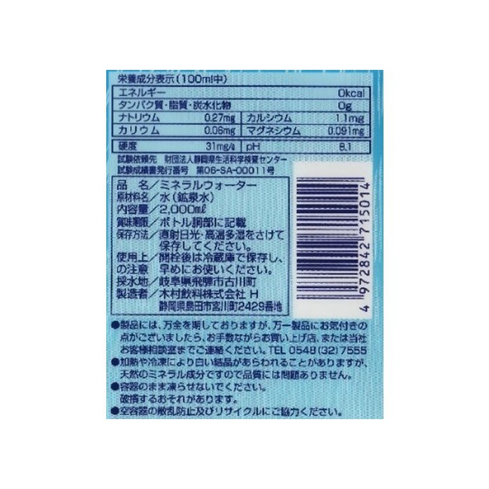 원본상품명: 木村?料 生命の水 「長期保存水 5年保存」2000ml×6本