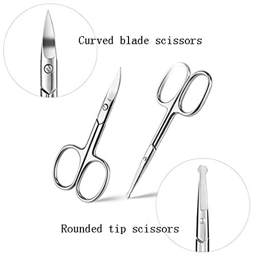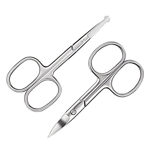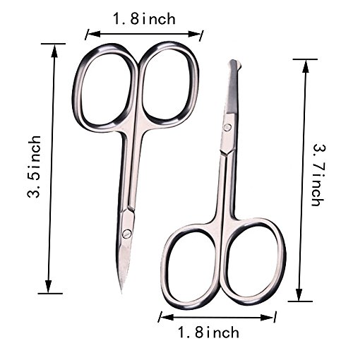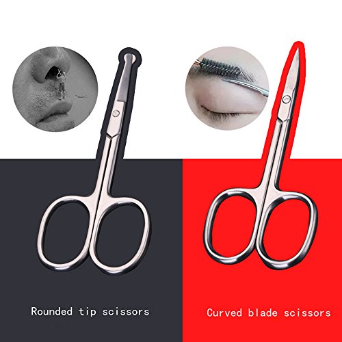 Eyebrow and Nose Hair Scissors Set Stainless Steel Trimmer with Curved and Rounded