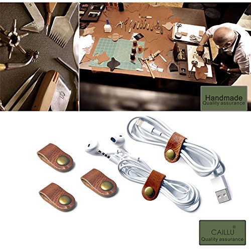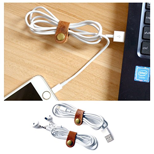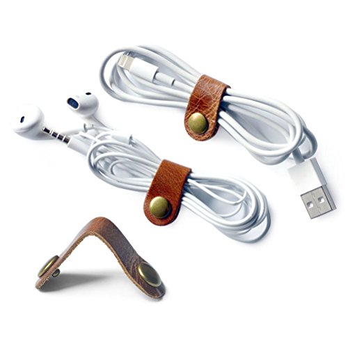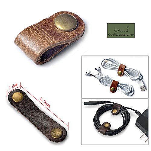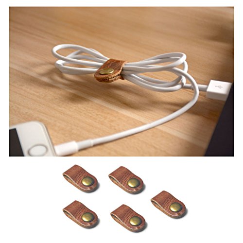 Earphone Winder Cord Organizer Leather Cable Straps,apple Lightning Cable Ties Leather,USB Cable Clips, Holder Rustic Cord Management System,Earphone Winder with Leather 5-Pack Handmade, by Caillu