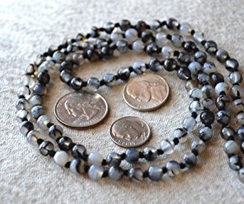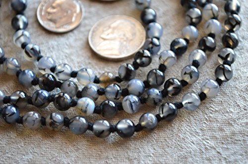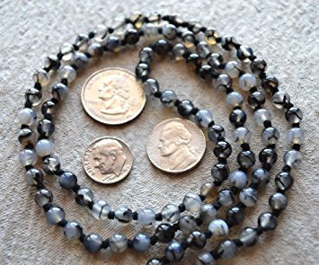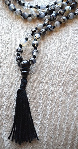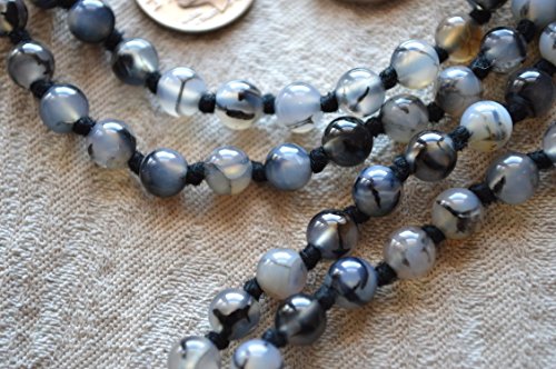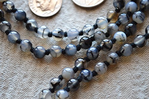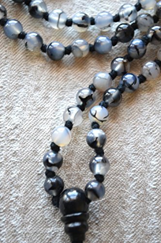 AGATE BLACK GREY DRAGON VEIN HAND KNOTTED EXCLUSIVE JAPA MALA 6 MM BEADS TOP GRADE PRAYER NECKLACE. BLESSED & ENERGIZED (108+1) HINDU TIBETAN BUDDHIST PRAYER KARMA BEADS SUBHA ROSARY MALA FOR NIRVANA, BHAKTI, FOR REMOVING INNER DOSHAS, FOR CHANTING AUM OM