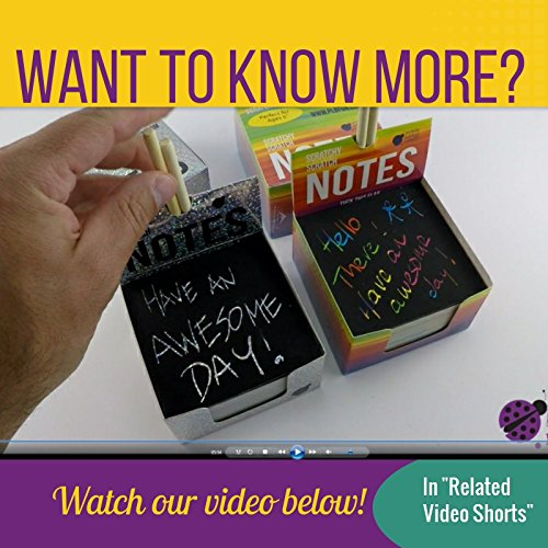 HIGH QUALITY Our scratchy notes are made with super thick and high quality cardstock material, not flimsy notepad or sticky note paper. They measure 3.5 x 3.5 inches, and we include more pieces than most competitors at 150 per box. GREAT GIFT In search of a creative gift for a family member, friend, teacher, child or coworker? The uniqueness of this rainbow drop scratch paper and the beautiful packaging make it a great little birthday, holiday, housewarming or just because present for almost anyone, including women, teens, boys, girls, and arts and crafts lovers. - Purple Ladybug Novelty Rainbow drop Scratch Off Notes - Black Matte Mini Notes with Rainbow drop pattern Underneath - 150 Note Cards - 3.5 x 3.5 Inches - 2 Wooden Stylus Pens - Colorful Desktop Dispenser with Stylus Holder