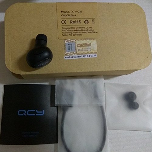 -. Label : QCY -. Manufacturer : QCY -. PackageQuantity : 1 -. ProductGroup : Wireless -. ProductTypeName : WIRELESS_ACCESSORY -. Publisher : QCY -. Studio : QCY -. Title : QCY Q26 Mini Bluetooth Earphone Wireless Music Headphone Car kit Handsfree Headset Phone Stealth Earbuds with Microphone For Smart Phones as Iphone7 plus Samsung Huawei Xiaomi Tablet PC