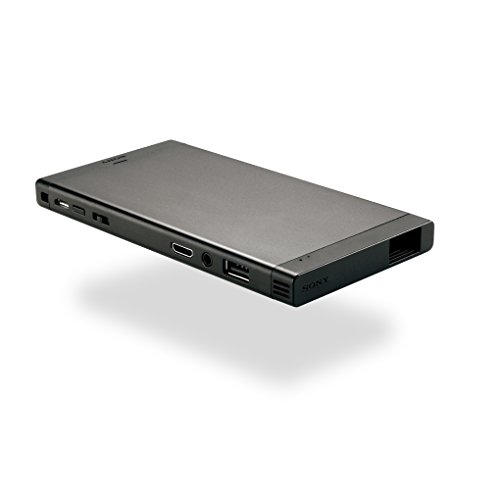 Sony's Mobile Projector easily turns virtually any surface into a HD theater through a simple Wi-Fi or HDMI connection. The handheld projector uses a laser light source to deliver HD resolution images (1920 x 720), with high contrast (80,000:1) for accurate colors. The pocket-sized mobile projector can display a screen size up to 120 inches, and can be used indoors and outdoors for home and mobile entertainment, business presentations and to display content from smartphones or tablets. Sony's Laser Beam Scanning (LBS) enables its HD resolution and focus-free projection, allowing for seamless viewing on uneven surfaces. With the addition of auto focus, the projector can keep constant, uninterrupted focus at various distances without the need for manual adjustments. The unit also provides the ability for keystone correction to maintain screen uniformity, both vertically and horizontally, despite angled surfaces. The device has an aluminum body with a matte finish. It features a built-in 3400mAh battery, which can also charge a cell phone or tablet via the USB port and the projector additionally includes a USB cable and detachable stand.Feature