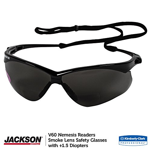 Jackson Safety V60 Nemesis Vision Correction Safety Sunglasses (22516), Smoke Readers with +1.5 Diopters, Black Frame, 6 Pairs / Case