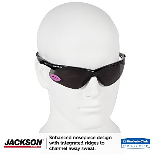 These Jackson Safety Nemesis V60 Vision Correction Safety Glasses with +1.5 Diopters have a black frame and smoke lenses – they’re ideal for outdoor use