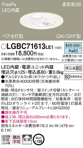 ●寸法(mm):埋込穴φ125・埋込高80