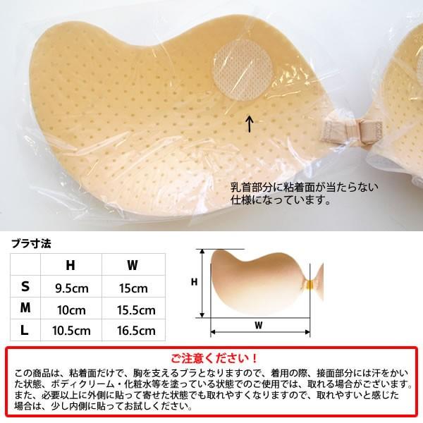 | 追加説明 | この商品は、粘着面だけで、胸を支えるブラとなりますので、着用の際、接面部分には汗をかいた状態、ボディクリーム・化粧水等を塗っている状態でのご使用では、取れる場合がございます。 また、必要以上に外側に貼って寄せた状態でも取れやすくなりますので、取れやすいと感じた場合は、少し内側に貼ってお試しください。 |