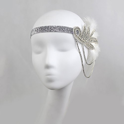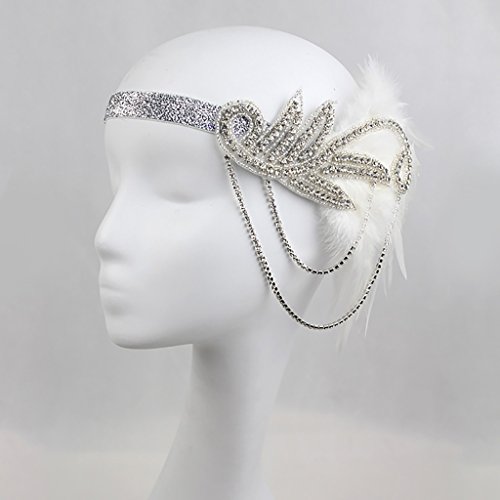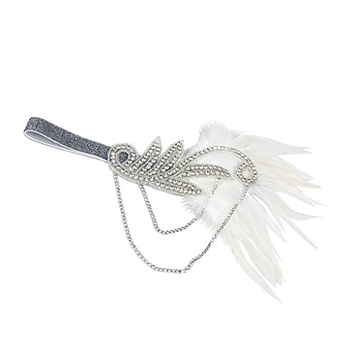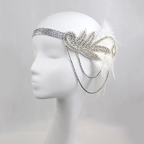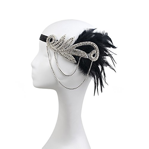 Description: - Adorned with crystal applique and chains, glitter elastic band fits for most - Elegant bridal headpiece, ladies party hair accessories, vintage 1920s style - Great hair accessory for Charleston dance ball, wedding, race, carnival, Great Gatsby fancy dress party - Material: Artificial Feather, Rhinestone - Dimension: 23 x 15 cm / 9.1 x 5.9 in - Head Size: 50 cm / 19.7 in Package Includes: 1 Piece Headband Note: Please be reminded that due to lighting effects, monitor's brightness / contrast settings etc, there could be some slight differences in the color tone of the pictures and the actual item. Also please allow a slight difference in size which may be caused by manual measurement. 0 |