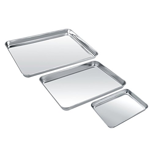 - 【Multi Size】Set of 3, Perfect to be used as cookie sheet or baking sheet for your regular oven and toaster oven, Medium 12 x 10 x 1inch,Small 10 x 8 x 1 inch,Small 9 x 7x 1 inch.