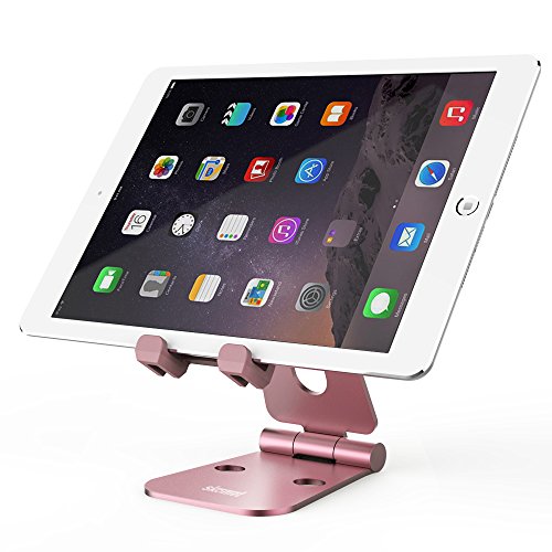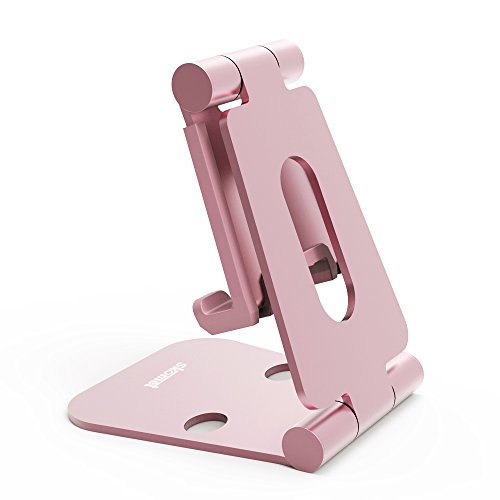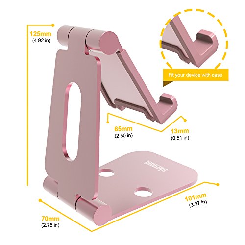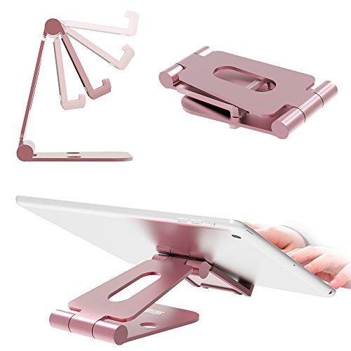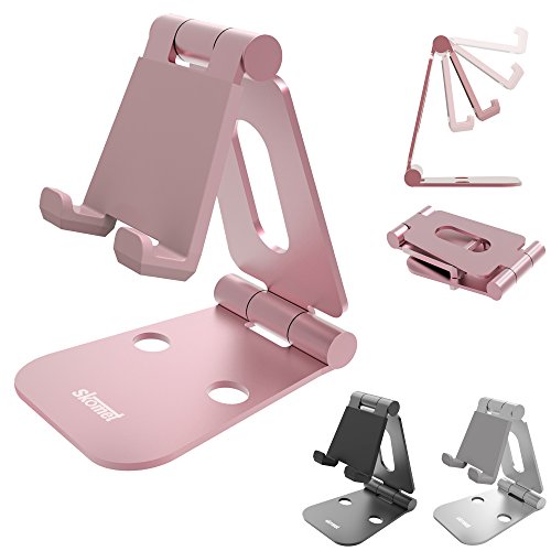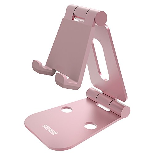 Skomet foldable aluminum phone and tablet stand, holder, dock for iPhone, iPad, Samsung, tablet and all smartphone devices - with dual adjustable panels - Rose Gold