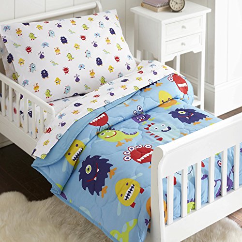 Made from extra soft microfiber fabrics, this 4 piece set by Olive Kids includes a printed comforter, flat top sheet, fitted bottom sheet, and a printed pillowcase. Designed to fit a standard, 28 x 52 inch toddler-size mattress.Feature