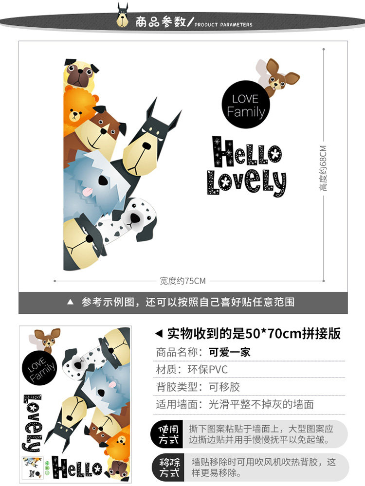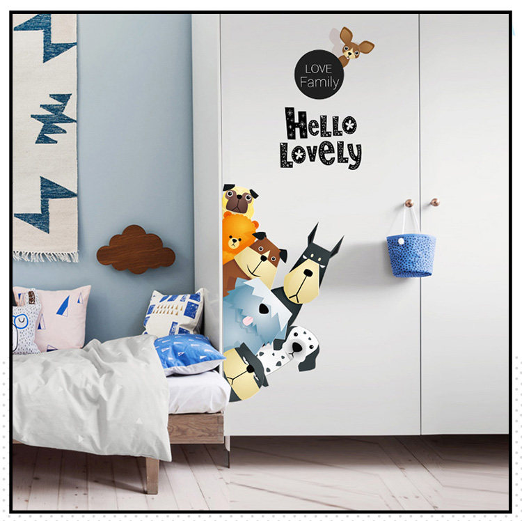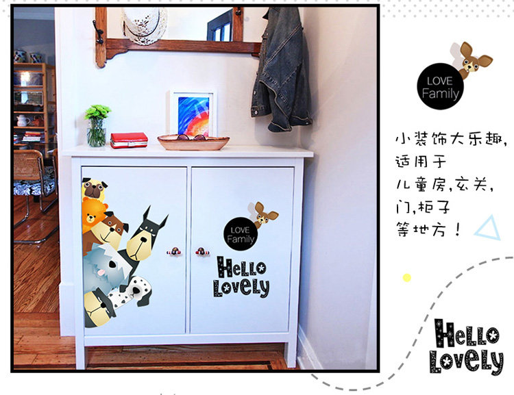 儿童房卡通动漫动物卧室衣柜门北欧简约装饰可移除墙贴纸贴画门贴