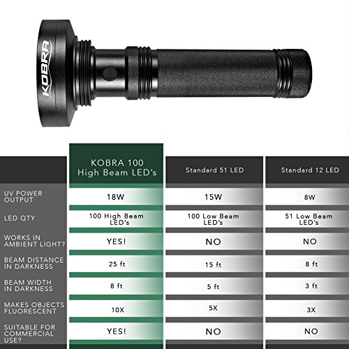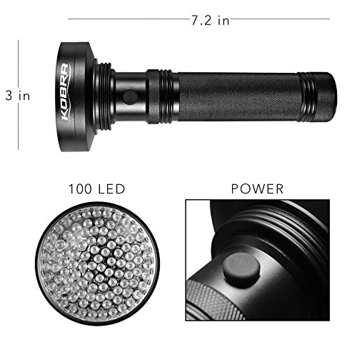 KOBRA UV Black Light Flashlight 100 LED - #1 Best UV Light and Blacklight Flashlight For Home & Hotel Inspection, Pet Urine & Stain Detection - Spot Counterfeit Money, Dangerous Leaks!