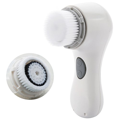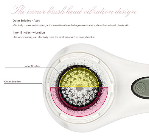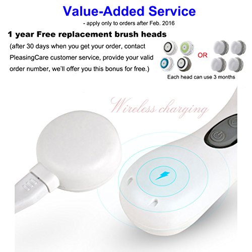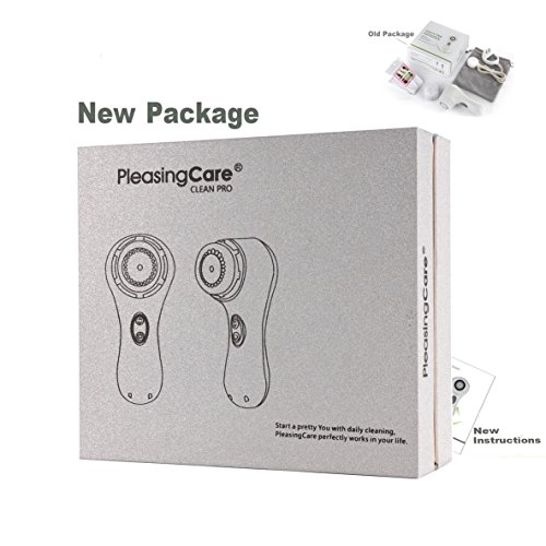 PLEASINGCARE SONIC FACE CLEANING BRUSH SKIN CARE MACHINE, 1 CLASSIC + 1 LUXE CASHMERE CLEANSING BRUSH HEADS, RECHARGEABLE FACIAL CLEANSING BRUSH WHITE
