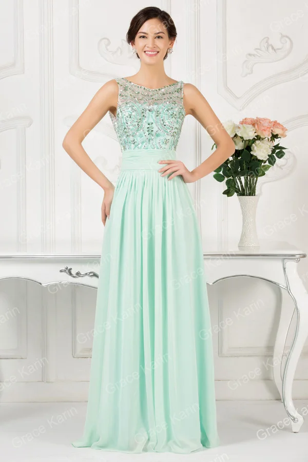 ライトミントグリーンロングシフォン花嫁介添人ドレスの下で50グレースカリン安い2016ウエディングドレス、新婦結婚式パーティードレス