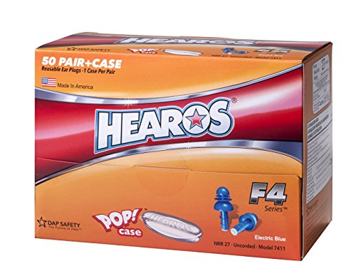 HEAROS 7412 F4 Reusable Earplug, NRR27, Corded, POP Case, Regular, Blue (Pack of 50)