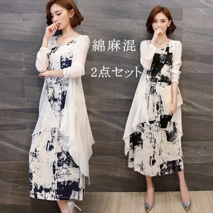★素材:ワンピース/ボリエステル カーディガン/綿麻混