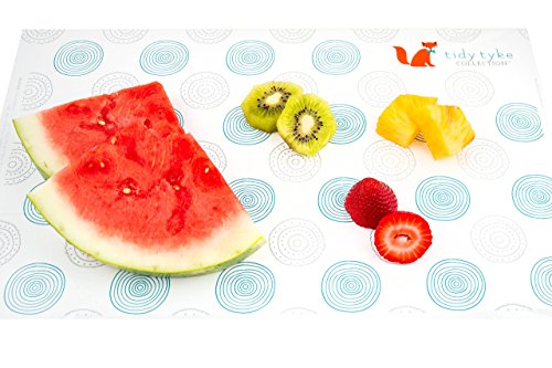 -. Feature : LESS-STRESS & LESS-MESS WHEN EATING OUT - You finally get away to enjoy a well-deserved break from the kitchen. No cooking or dishes! YAY! Unfortunately, eating out can actually be more stressful, embarrassing and messy than just staying home. Since all toddlers seem to agree that plates are meant for tossing and that tables are for licking and biting, we had to come up with a neat solution! We created a single-use, placemat to make meal time much more pleasant and post-meal clean up a breeze! / PROTECT YOUR BABY FROM GERMS, CHEMICALS & ALLERGENS - If you cringe at the site of your child eating from a "freshly-cleaned-with-a-dirty-rag" restaurant table, then you need these in your life! Eating out can subject your child to many germs, chemicals and allergens. Keep your little one safe. Our large 12"x18" table topper creates a safe, defined space for your baby to enjoy their meal and toys. Never worry about that sneeze you didn't see or the dangers of cross contamination again. / BPA, PVC, PHTHALATE & LEAD FREE - Tidy Tyke Collection - Founded, Owned & Operated by a USA Mom "I use our Tidy Mats for my own kids. We use the strictest quality standards to ensure our mats are free from BPA, PVC, phthalates & lead. We are even California Prop 65 compliant. Out of an abundance of caution, we also back-P.R.Int our mats so the food-grade ink never even touches the food. You never have to worry about the safety of our mats when you purchase from us! That's my promise." Cara, Owner / AMAZING MOM HACK AND ABSOLUTE DIAPER BAG ESSENTIAL - We know your diaper bag is already busting at the seams. That's why we conveniently package ours in 3 slim, resealable packs of 20. The 60 mats are individually folded for easier application when you are trying to get settled at a restaurant. Our stylish, unisex design is a favorite among bloggers! Our mats will give you instant mom-hack credibility among your friends and fellow restaurant goers! Awesome Baby Shower Gift & Baby Registry Item! / 4 EXTRA STICKY SIDES, THICK PLASTIC, ANTI-STATIC, CUTE DESIGN - When you purchase our top-rated Tidy Mats, you are buying the best disposable placemats on the market! WE GOT RID OF: loud designs, underperforming adhesive that's easy to pull up, thin plastic that tears easily, bulky packaging that is not diaper bag friendly, and the staticky, invisible strips that make application a challenge. We didn't invent the disposable placemat, but we did perfect it. We took a good idea and made it genius!