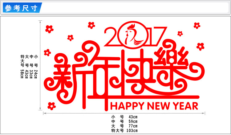 元旦农历新年春节墙贴商场店铺玻璃橱窗装饰贴纸新年快乐贴纸贴画