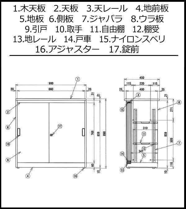 | サイズ | 【外寸】W900×D450×H890mm、【内寸】W860×D341×H762mm 個装サイズ:41×91×88cm |
