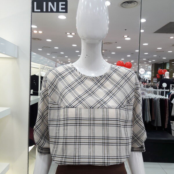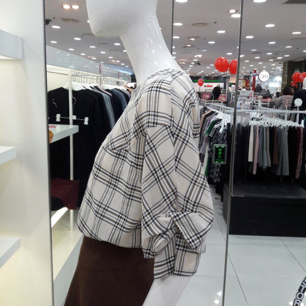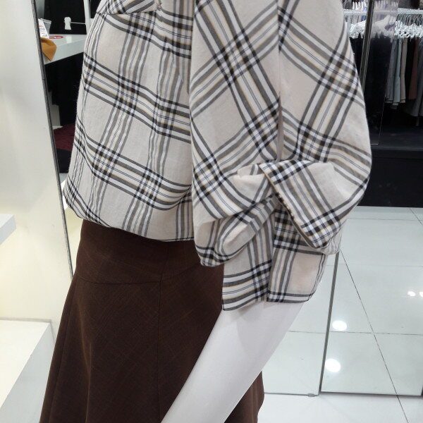 18년 가을 신상 루즈핏 블라우스입니다기본 라운드 목선에 전체 체크패턴이 세련된 디자인입니다 소매주름 포인트가 사랑스럽고 예쁜 분위기이며 슬랙스 스커트에 너무 잘 어울려요