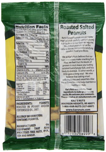 Kar's Nuts Salted Peanuts, 3.5-Ounce Bags (Pack of 42)