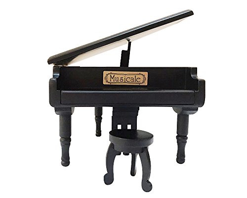 Wooden Piano Music Box Style 18 Tones Grand Gifts for birthday Classical Nice Music Box (Black)