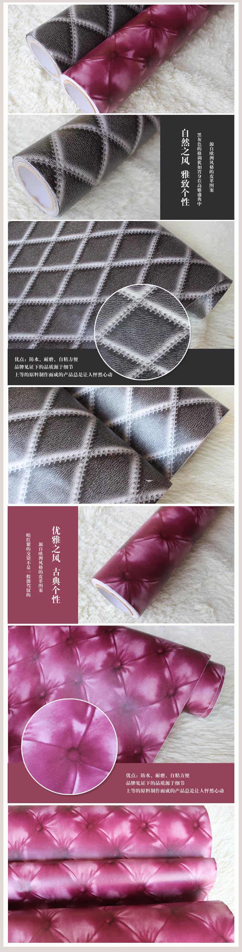 PVC个性仿皮革加厚防水自粘 ktv客厅包房卧室背景墙