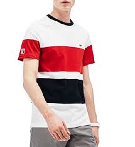 Lacoste Men's Short Sleeve Color Block T, White/Cherry Red/Navy Blue, 3