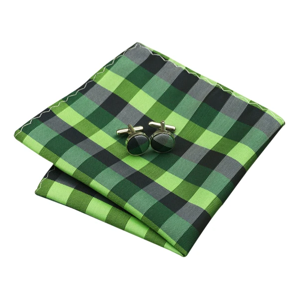 | [해외]남성 녹색 블랙 격자 무늬 실크 자카드 넥타이 손수건 커프스 단추 선물 상자 가방 세트 비즈니스 웨딩 파티 남성 넥타이 B-406 |