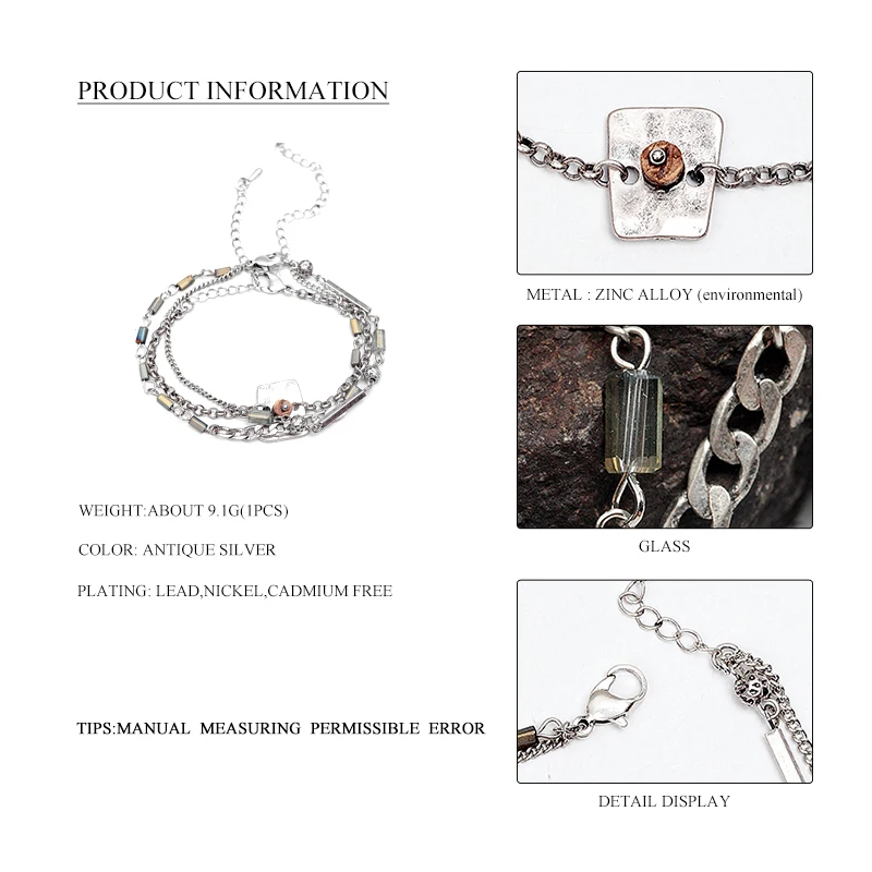 Key Words:3 PCS Antique Silver Link Chain Bracelets