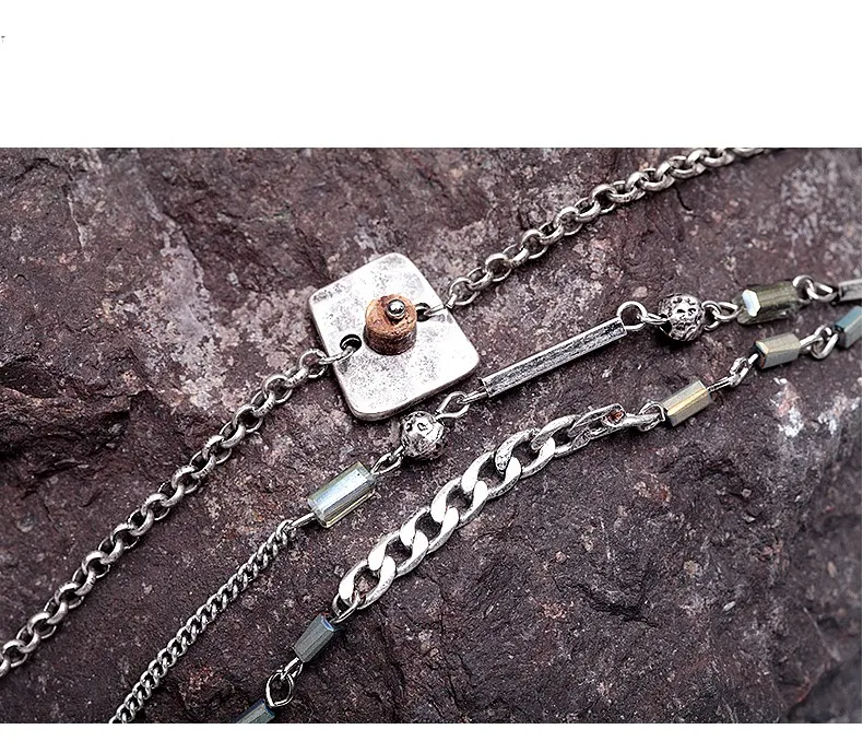 Production Name:Vintage Colorful Beaded Multilayer Link Chain Bracelets
