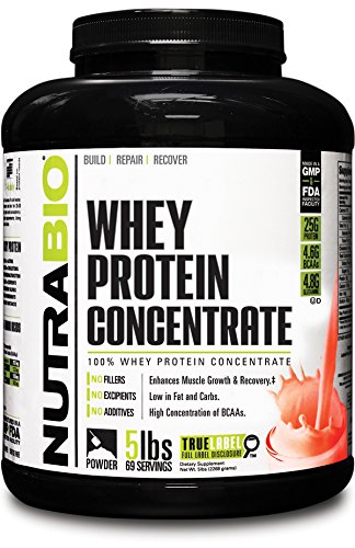 -. Title : NutraBio 100% Whey Protein Concentrate WPC80 (Strawberry) - 5 Pounds