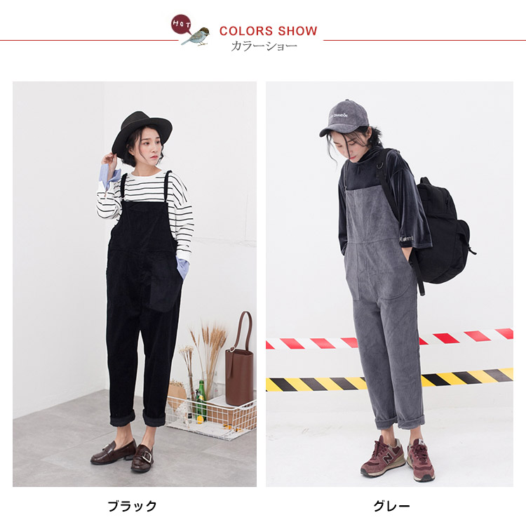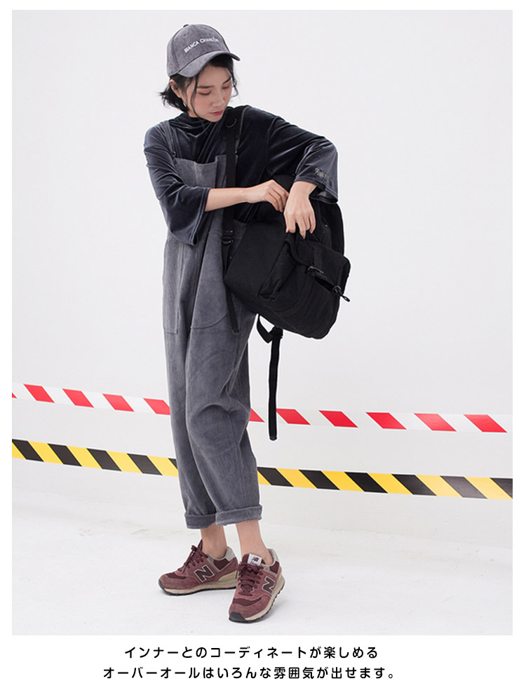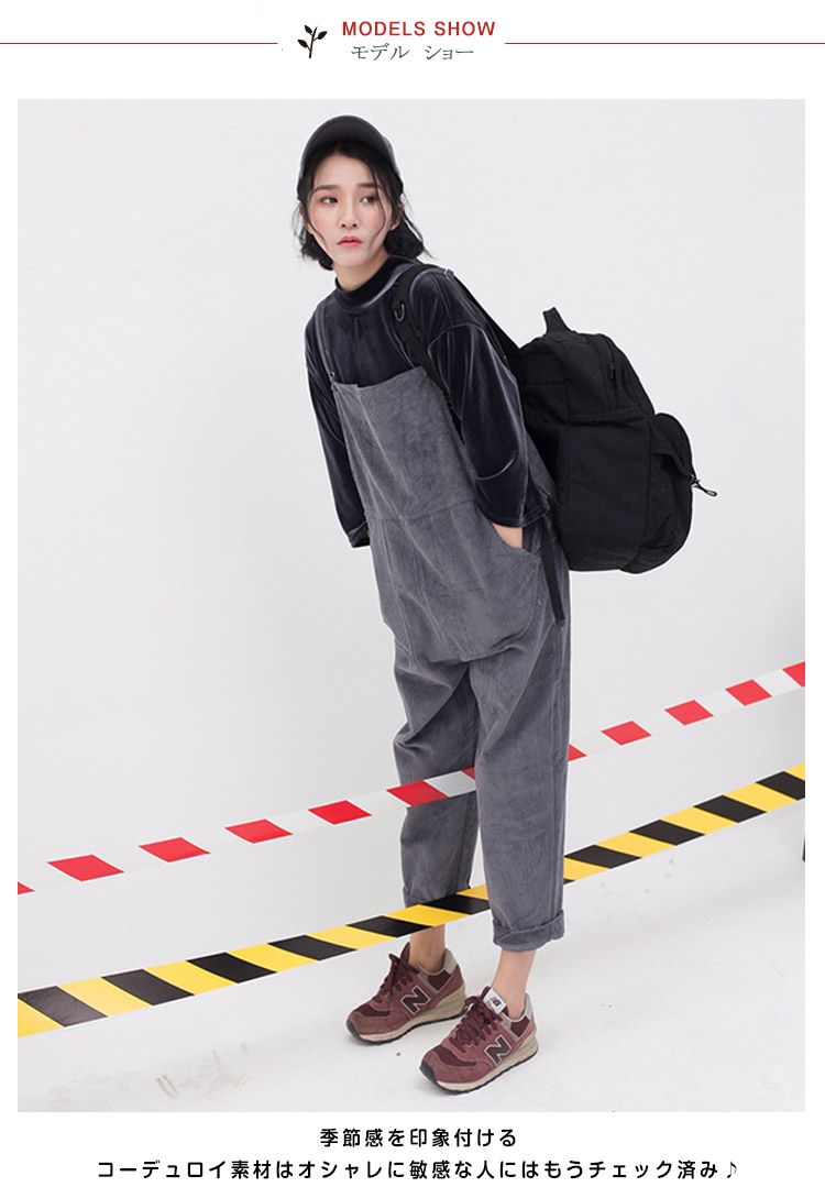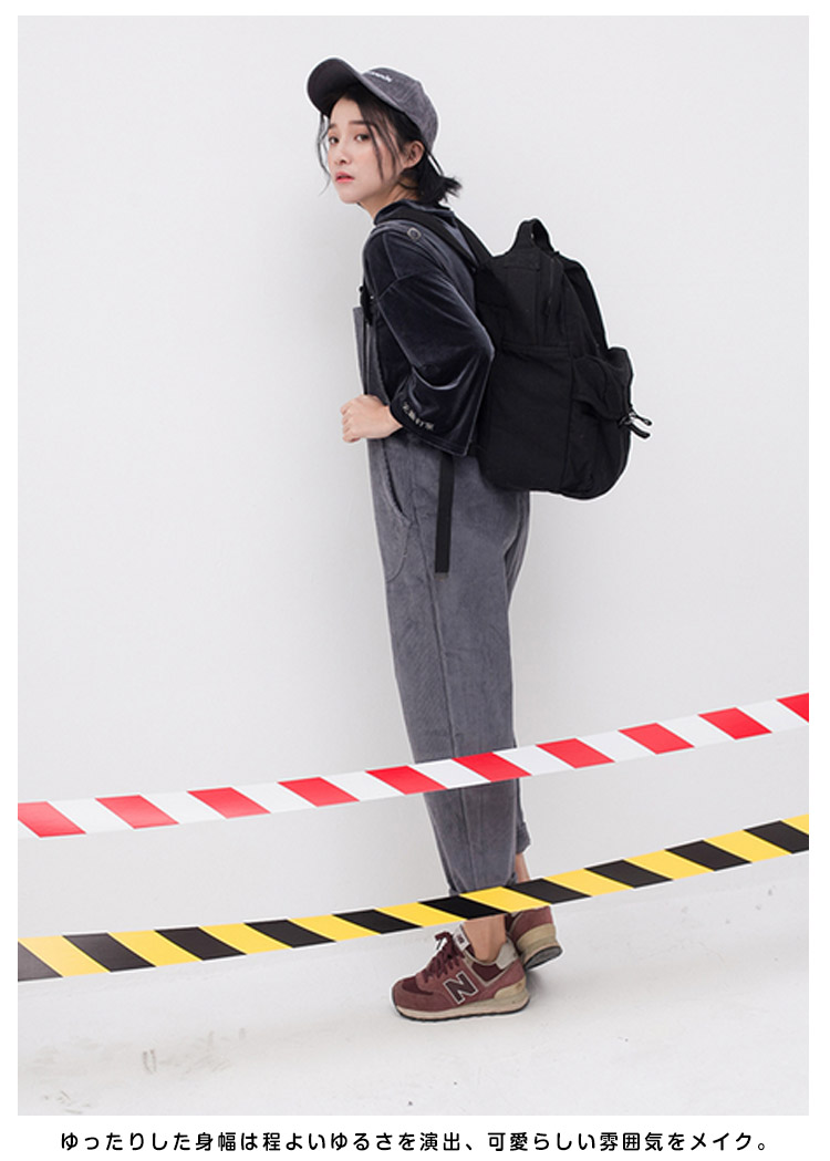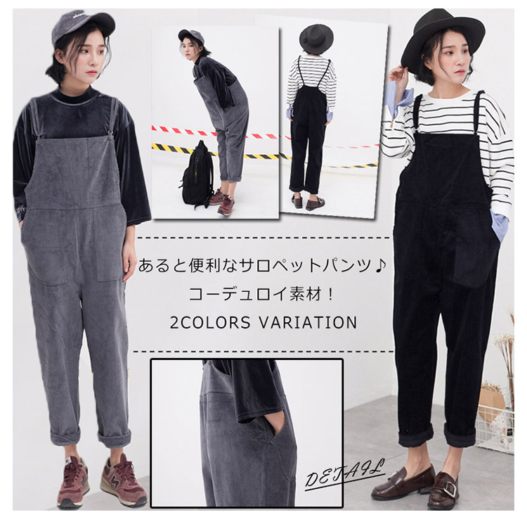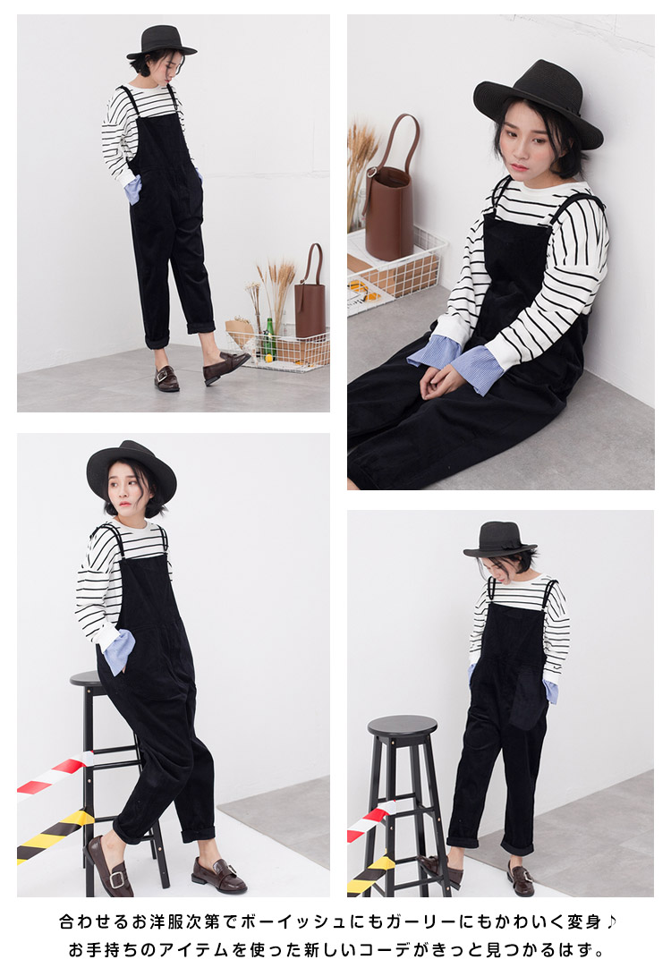 | あると便利なサロペットパンツ♪コーデュロイ素材!季節感を印象付けるコーデュロイ素材はオシャレに敏感な人にはもうチェック済み♪ゆったりした身幅は程よいゆるさを演出、可愛らしい雰囲気をメイク。インナーとのコーディネートが楽しめるオーバーオールはいろんな雰囲気が出せます。合わせるお洋服次第でボーイッシュにもガーリーにもかわいく変身♪お手持ちのアイテムを使った新しいコーデがきっと見つかるはず。 | |