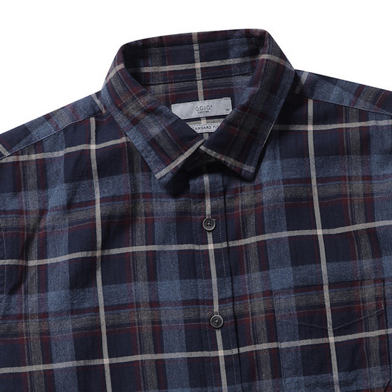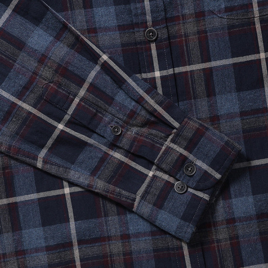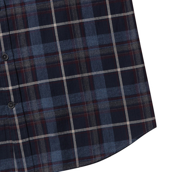 - 헤링본 바탕에 체크 패턴을 적용한 남성 셔츠.