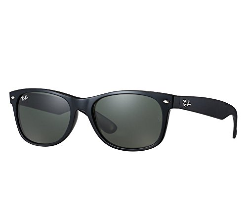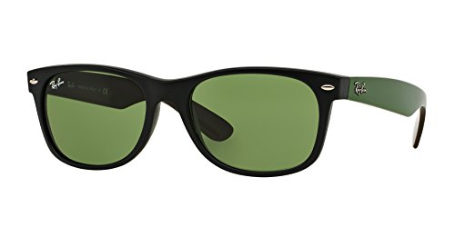 Ray-Ban New Wayfarer Sunglasses, 55mm, Black Rubber Frame, Crystal Green Lens 622-5518