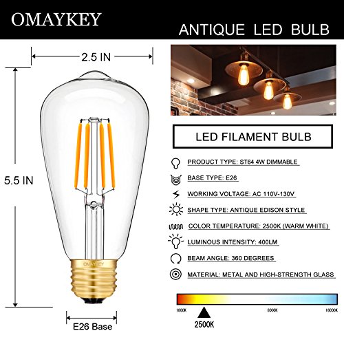 - ✔ RETRO STYLE & ENERGY SAVING - Antique ST64 Edison Bulb, 360° Light Pattern and Real Full Angle, Light Pattern Same as Incandescent Bulb, Replace 40W Incandescent Bulb by 4W Filament LED Bulb, Save over 90% on Electricity Bill of Lighting, Less Heat and Instant on