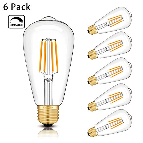 OMAYKEY LED Edison Bulb 4W (40W Equivalent) 2500K Warm White Glow, E26 Medium Base Dimmable ST64 Vintage Edison Light Bulbs, 360 Degree Beam Angle, Pack of 6