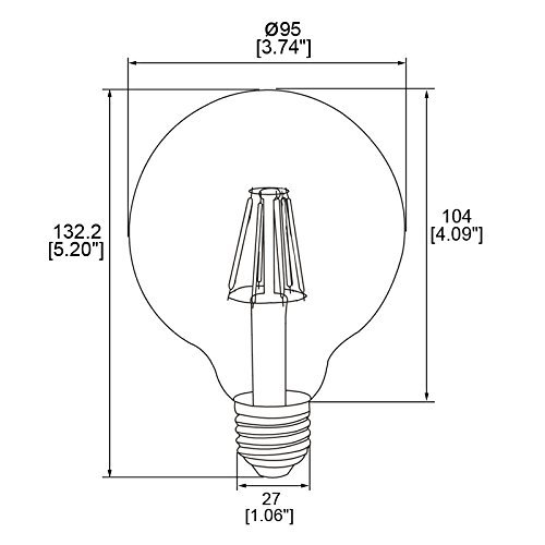 HERO-LED G30-DS-6W-WW27 Dimmable G30 E26/E27 6W Edison Style LED Vintage Antique Filament Bulb, 60W Equivalent, Warm White 2700K, 4-Pack
