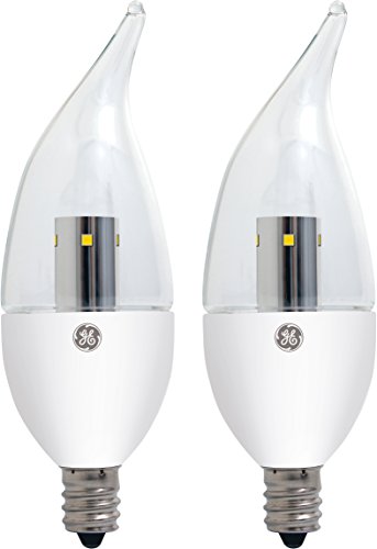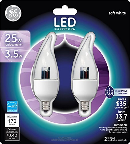 GE Lighting 22997 LED 3.5-Watt (25-watt replacement) 170-Lumen Bent Tip Light Bulb with Candelabra Base, Clear Soft White, 2-Pack